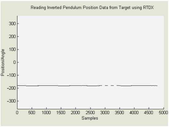 In the two previous experiments, we measured the encoder’s angle change using the RTDX sampling time. As illustrated in Figure 16, we observed the pendulum’s steady-state behavior as it remained at a stable value of −180 degrees.