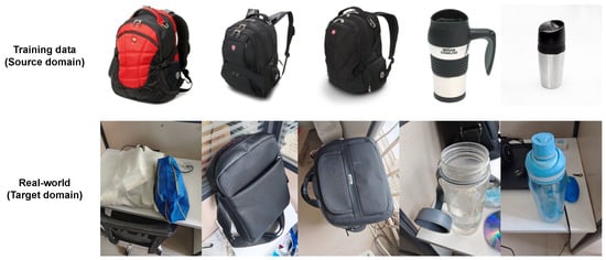 Added Training data differ significantly from the data in the real-world scenario. Source domain (upper) is pre-processed studio images that are very different from the real-world scenario (lower), which is called domain shift.