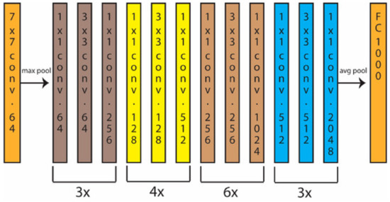 The ensembles in this study are constructed using sets of ResNet50 [33] (short for Residual Network with 50 layers or using MobileNetV2 [34]. ResNet50 is a variant of the original ResNet architecture, known for its deep structure, which mitigates the vanishing gradient problem by introducing skip connections or residual blocks. These residual blocks allow for the training of very deep neural networks effectively. ResNet-50 specifically consists of 50 convolutional layers, including residual blocks, and is pretrained on a large dataset like ImageNet, making it capable of extracting high-level features from images. It is a popular choice for various image-related tasks, including object detection, image recognition, and transfer learning. Since winning the ILSVRC 2015 contest, ResNet50 has gained in popularity and is well understood. It is particularly known for its skip connections, which allow the input of a block to be added to its output. This technique promotes gradient propagation and facilitates the flow of lower-level information to higher-level layers. Figure 4 presents a high-level visualization of the network’s architecture.