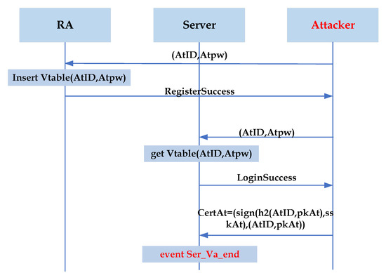 Zhang et al. [19] conducted a formal analysis of the 5G extensible authentication protocol transport layer security (5G EAP-TLS) protocol and evolved the first pi-calculus model for 5G EAP-TLS. They successfully identified two security vulnerabilities in 5G EAP-TLS, namely, the man-in-the-middle attack and the authentication between the home network side and the user. Based on the verification results, Zhang et al. proposed an improvement to the 5G EAP-TLS protocol, which satisfies the ability to resist man-in-the-middle attacks, but still lacks the ability to resist DoS attacks. Research on the security analysis of 5g protocols also includes [20,21,22]. Cas and Martin conducted a fine-grained formal analysis on the components of the 5G authentication and key agreement (5G-AKA) in [21], and the authors of [20,22,23] used different formal tools to analyze the 5G-AKA protocol to perform a comprehensive system evaluation. Feng et al. [24,25] formally analyzed the security assumptions and security goals required for different scenarios of the fast identity online universal authentication framework (FIDO UAF) protocol, and established the minimum security assumptions required to achieve each security goal. Based on the FIDO UAF model, authenticator rebinding attacks were found on the two apps of JD Finance and Baopay.