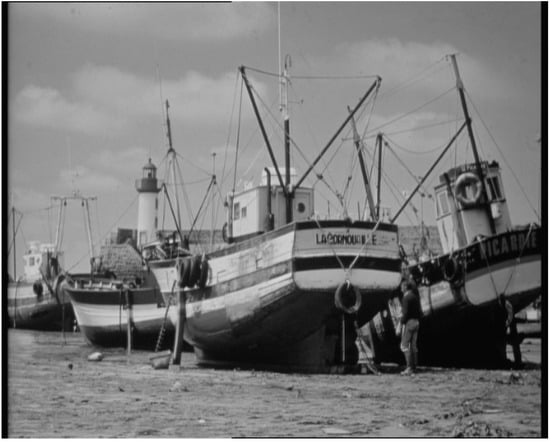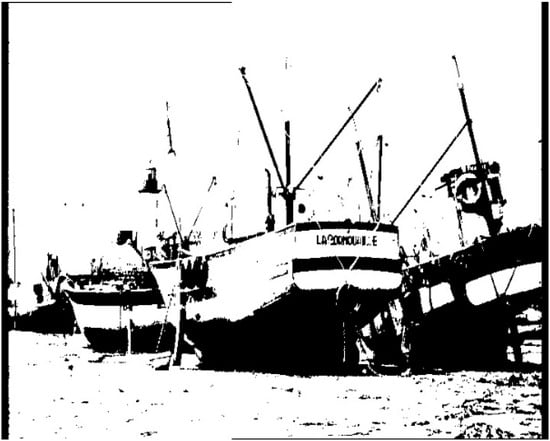 The use of a histogram for image threshold segmentation has been widely applied, with the most typical approach being the OTSU method, also known as the maximum between-class variance method, which aims to maximize the variance between the foreground and background after segmentation. Most computer vision software currently integrates the OTSU algorithm API, such as the cv2.threshold() function parameter type in OpenCV, which uses cv2.THRESH_OTSU and can achieve image threshold segmentation by using the OTSU method. Figure 4, Figure 5 and Figure 6 show the original image and the binarized image using the OTSU method, with a threshold segmentation value of 92.0 for binarization. The OTSU method can effectively segment ships, using them as the foreground and unifying the sky and seawater as the background. If it is necessary to segment the seawater or sky, the OTSU method will face significant difficulties and cannot simply use the sky or seawater as the foreground or background. In this case, a multi-threshold segmentation method needs to be used.