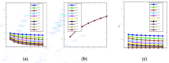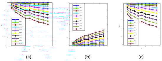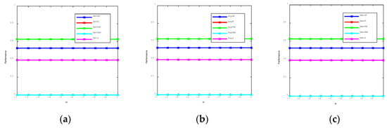 A three-view numerical dataset with five clusters and two feature components is considered. The data points in each view are generated from a two-component two-variate Gaussian mixture model (GMM) with their mixing proportions, and The means for the first view are The means for the third view are These & are the coordinates for the first view, & denotes the second view coordinates, and & denotes the third view coordinates, as presented in Figure 3a–c, respectively. As can be seen, the two views of the & and & are mirror images of each other. So it is clear that the data points & for the second view are generated on the basis of inverse data points of &
