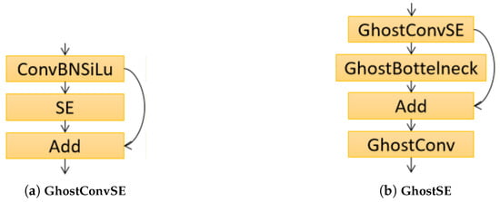 The left image shows GhostConvSE, which uses SE attention to obtain more feature information; the right image shows GhostSE.