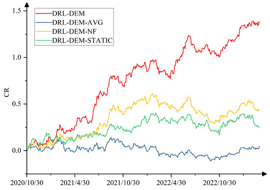 - DRL-DEM-NF: Without introducing real-time market feedback, only two components of the mixed reward function, namely ensemble prediction accuracy reward and ensemble prediction model ranking reward, are retained.