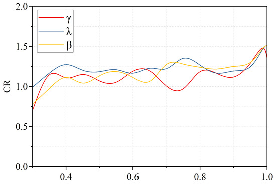Furthermore, objective function (28) has three hyperparameters, including the discount factor , as well as and in the hybrid reward function . To assess the impact of three parameters on the model, we explored various value ranges between 0.3 and 1. The experimental results, as depicted in Figure 12, indicate that as the values of three parameters vary, the return curve exhibits a relatively stable trend, with minimal fluctuations within the range of 0.4 to 0.9. Notably, when these parameters are set in the interval of 0.9 to 1, an overall enhancement in model performance becomes evident. The most favorable results were achieved when the discount factor was set to 0.99, and likewise, when and were both assigned a value of 1.