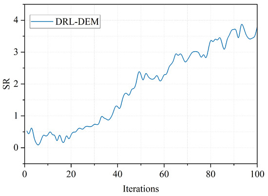 Due to the complexity and instability of the stock market, deep reinforcement learning tends to face large fluctuations during the training process, making it difficult to reach a converged state. Figure 13 shows the changes in the SR during the DRL-DEM training process. It can be seen that the SR shows a continuous improvement trend during the continuous iteration and optimization process. It shows that the model has the ability to adapt to changes in the stock market, and can effectively respond to market fluctuations, providing investors with stable and reliable predictions and decision-making basis.