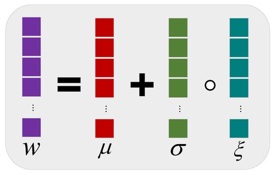 where and are learnable parameters and denote the mean and standard deviation, respectively, and is the noise. Here, the term ∘ denotes the multiplication of the corresponding elements, i.e.,