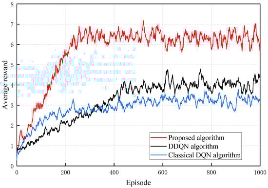 Average reward of the Noisy-D3QN-PER algorithm and other comparison approaches.