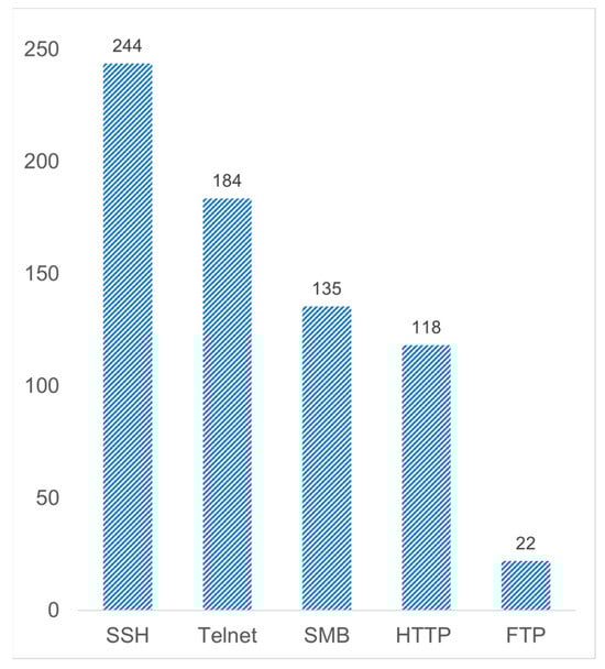 - Multiple Protocols: A honeypot deployed on a single port fails to study and contrast the adversary behavior across different protocols and their corresponding mechanisms of attack. The current study implements a honeypot design that allows adversary interaction on five protocols: SSH, FTP, Telnet, HTTP, and SMB (see Table 2);