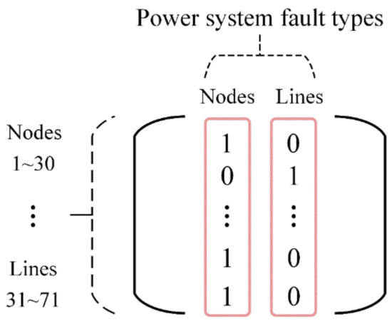 State matrix. We assume the presence of 30 power nodes, 41 lines, and fault types including faults at power nodes and lines.