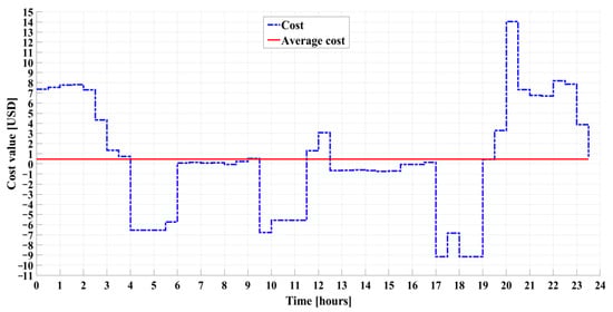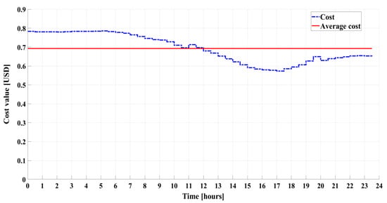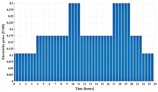 The actual price chart of electricity in Vietnam in US dollars (USD), which has been analyzed in [46], is shown in Figure 9. In Vietnam, the cost of industrial electricity fluctuates based on the daily demand, with prices generally higher during peak hours and lower during off-peak hours. Specifically, the highest electricity price is normally observed from 9:30 am to 11:30 am and from 5:00 pm to 8:00 pm. Conversely, the lowest prices are recorded from 10:00 pm to 4:00 am.