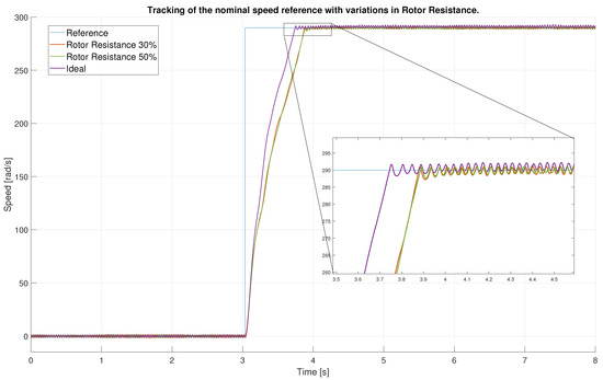 Tracking of the nominal speed reference with variations in rotor resistance.