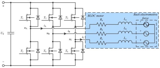 The brushless DC (BLDC) motor owns superior control performance, mainly manifested in good speed control performance, wide speed regulation range, large starting torque and high efficiency [1,2,3,4]. The BLDC motor is widely used in many high-precision industries, such as defense, aerospace, robotics, industrial control processes and other fields [5,6,7].