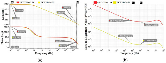 Figure 17a suggests that the offset variation caused by the supply voltage’s fluctuation is also preserved with parasitic extraction, and a good power supply rejection ratio is achieved.