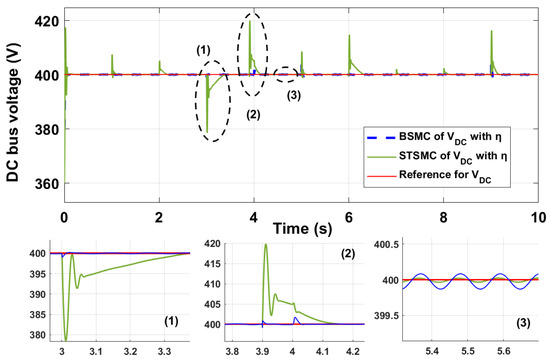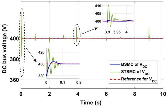 Regulation of DC bus voltage: BSMC and STSMC performance.