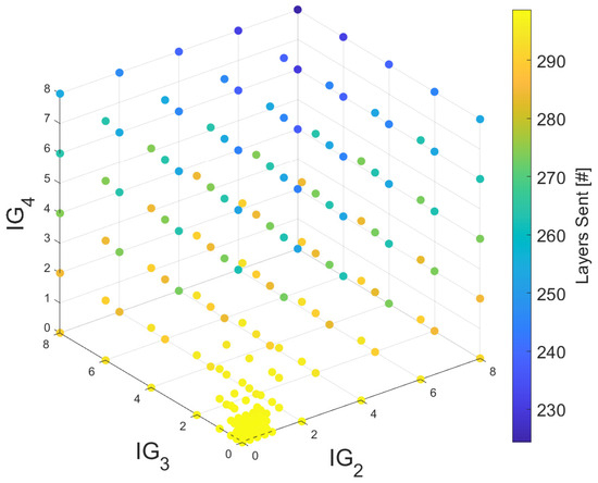 A chunk size of 4 GOP was designated for MPC, equivalent to 32 frames or roughly 1 s of playout, given a frame rate of 30 fps. Four bitrate levels, labeled as R, were used, each integrating various layers. Comprehensive details of each R can be accessed in Table 7. An average across all chunks served as a reference for AVQ of Y-PSNR in this MPC implementation, accompanied by a chunk size () specified in bits. The initial spanned from 0.1 s to 5 s, incremented by 0.2 s. The estimated throughput (C) was calculated as the harmonic mean throughput of the previous five chunks, with weight assignments of , , and , aligning with the recommendations in [49].