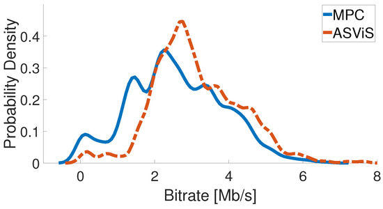 Estimated bitrate distribution for ASViS and MPC.