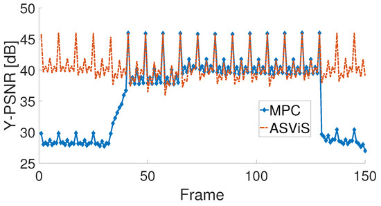 Video quality behavior of Y-PSNR for ASViS and MPC.