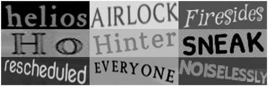 - Wang, K.; Belongie, S. Word spotting in the wild. In Proceedings of the Computer Vision–ECCV 2010: 11th European Conference on Computer Vision, Heraklion, Crete, Greece, 5–11 September 2010; pp. 591–604, Part I 11. [Google Scholar]