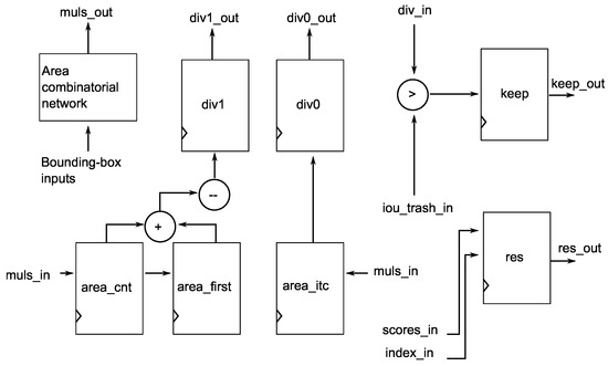 Figure 10 shows an abstract RTL schematic of the NMS module. The following is a description of how the module calculates these equations.