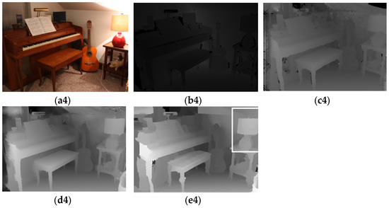 - Scharstein, D.; Szeliski, R. A Taxonomy and Evaluation of Dense Two-Frame Stereo Correspondence Algorithms. Int. J. Comput. Vis. 2002, 47, 7–42. [Google Scholar] [CrossRef]