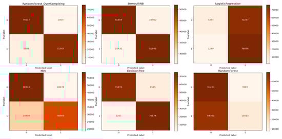 To prevent overfitting, assess the model’s performance objectively, and ascertain its generalization capability; the 5-Fold Cross Validation method is employed. The original training dataset was evenly divided into five subsets. Each subset’s data were used as a validation set in turn, while the remaining four subset data served as the training set, and this process was iterated. The model’s performance, as indicated in Table 5, demonstrates a notably high average accuracy, approximately 0.95, especially in the oversampled random forest model. Consequently, after data preprocessing, the original dataset was randomized and split in an 8:2 ratio to create a training set and a test set.