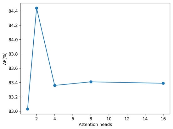 (2) The contribution of the MHA branch: Figure 3 shows the contribution of the MHA branch under different numbers of attention heads. When the number of attention heads is 2, we achieve the best performance and the AP is improved by 1.41% compared with the case when the number of attention heads is 1. When the number of attention heads exceeds 2, more attention heads do not bring a higher improvement and the AP tends to be flat. We think this is because both image information and sound information are input at the same time, and these two modalities of information are mapped to different semantic spaces, which brings higher discriminability. More attention heads will destroy this relationship, leading to the decrease in AP.