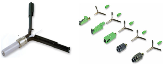 - Iwashita, Y.; Tan, S.; Takizawa, K.; Kawanishi, N. Field-Installable Fusion Splice Connector. In Proceedings of the OFC/NFOEC 2008, San Diego, CA, USA, 24–28 February 2008; pp. 1–5. [Google Scholar] [CrossRef]