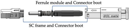 - Sugita, E.; Nagase, R.; Kanayama, K.; Shintaku, T. SC-type single-mode optical fiber connectors. J. Light. Technol. 1989, 7, 1689–1696. [Google Scholar] [CrossRef]