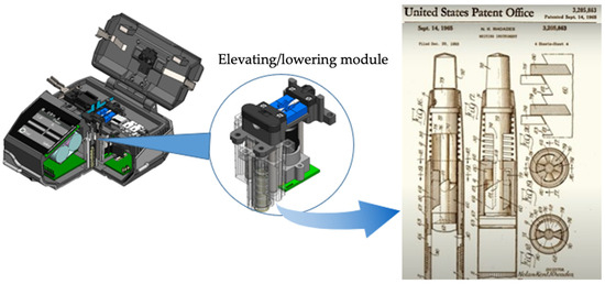 Structure of the fusion splicing module with lift/lower function.