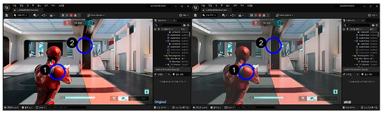 Characterizing VR headset displays differs from general monitor’s displays and requires additional considerations. While various software options exist to define and display color patches on VR displays for spectrophotometer measurement, native integration with VR headsets presents challenges. In particular, popular VR headset such as Oculus devices operate on an Android-based VR operating system and cannot be utilized as designers’ conventional monitor displays. VR devices introduce the possibility of color difference errors in the output color patches. Therefore, this study aimed to establish a framework that ensures the most stable color output within the Android VR platform. Figure 11 shows the color working environment in Unreal Engine from a designer’s perspective. It uses a color checker (reference targets) with standard colors and grayscales for measurement.