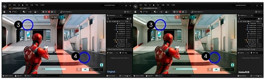 To prevent these color discrepancies as shown in Figure 9, it is important to closely review the color space settings on the designers’ monitor. Hence, this study aims to investigate the most suitable color space for the designers’ monitor display in a VR development setup.