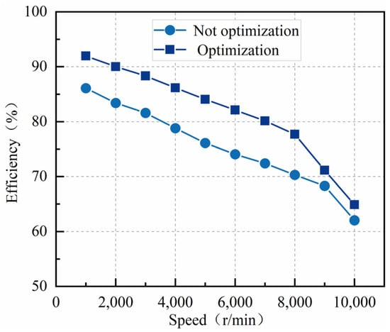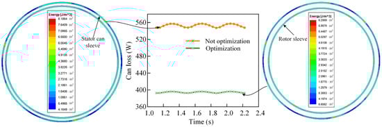 To demonstrate the effectiveness of multi-objective optimization design results, the can loss and efficiency of the motor before and after optimization were compared using the finite element method. According to the optimized motor design parameters, modify the finite element model, and simulate again to get the calculation results. Figure 7 shows the comparison of the can loss of the CPMSM.