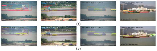 The addition of the 160 × 160 scale layer allows the information for features of small targets to continue to be passed along the down-sampling path to the other 3 scale feature layers, thus strengthening the capability of the model for the fusion of features and improving the accuracy of small target detection. Introducing an additional decoupling header expands the detection range for ships of small sizes. The improvement in detection accuracy as well as range allows the network to more accurately recognize ships in the river channel.