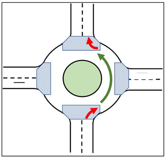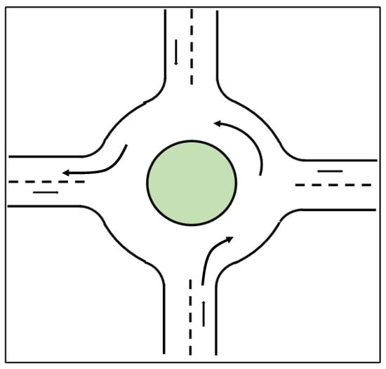- Klos, M.J.; Sobota, A. Performance evaluation of roundabouts using a microscopic simulation model. Sci. J. Silesian Univ. Technology. Ser. Transp. 2019, 104, 57–67. [Google Scholar] [CrossRef]