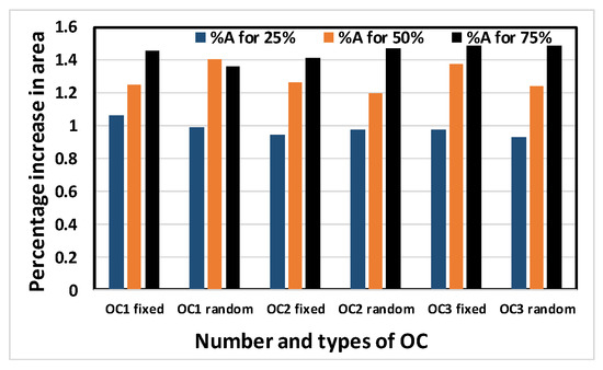 Figure 15 show the average percentage increases of area, delay, leakage power and total power, respectively, as calculated for all simulated benchmark circuits. The results show that the average percentage increase of area, leakage power and total power occur at almost constant rates with increasing obfuscation levels, with some minor intermediate deviations. These deviations are predictable, as the same OC is not used when the obfuscation level is increased causing different area, leakage power and total power requirements per OC. If the same cells were chosen with increasing obfuscation levels, area, leakage power and total power would also increase if the number of key bits were not constrained by the upper limit of 80. The only exception is the delay. The reason average percentage delay does not increase at a constant rate is that the inserted OCs do not touch the old critical path, as mentioned in the algorithm; rather, they burden the non-critical paths. As a result, the delay determined by the critical path may not increase linearly with obfuscation levels and may even decrease.