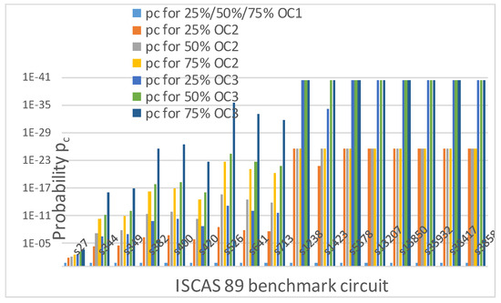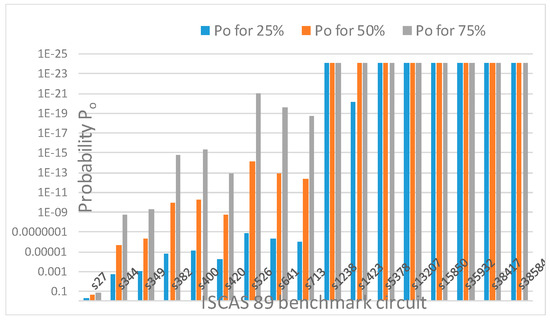 Po is plotted on a log scale in reverse order against ISCAS 89 benchmark circuits.