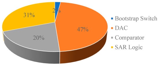 Figure 11 shows the power consumption of each block. As the total array capacitance of DAC is 620 fF, it consumes a large portion of the power.