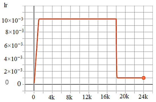 The initial learning rate was set as 0.01. Before 1000 steps, it reached the preset value through linear growth. At step 18,000, the learning rate dropped to 0.001.