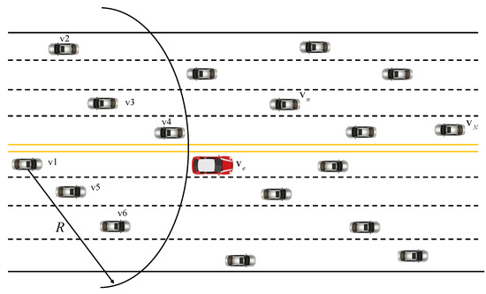 N denotes the number of all legitimate vehicles. All lanes are divided into two directions, and vehicles follow the corresponding prescribed directions in their respective lanes. The speed of all vehicles is within a given range. The source vehicle