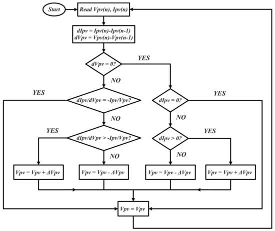 Flow chart of incremental conductance MPPT algorithm.