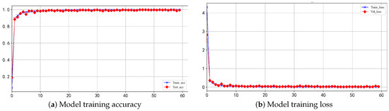 Figure 9 shows the model training results on the public Xmega dataset. Figure 9a is for the model training accuracy and Figure 9b shows the loss of the model during the training process.
