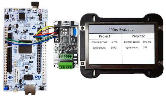 Among other practically oriented works, asymmetric multiprocessing [23] proposes a distributed architecture oriented to reliability for a UAV drone in the vicinity of people. Five safety-critical subsystems isolated at the hardware level communicate through an on-chip protection environment. The implementation of a distributed battery-powered wirelessly connected multiprocessing architecture for monitoring a rail freight wagon is described in [24]. The main processor of the system enables power supplies for the other two units. LoRaWAN radio technology is applied for communication with the master device in the locomotive. As demonstrated in [25], a dual-core processor can also be applied for teaching and prototyping, with one core responsible for plant simulation and the other for control. Models of a buck converter circuit and tank system are given as examples of fast and slow dynamics.