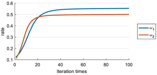 In Algorithm 1, n is the iteration round of the FL algorithm; and = 0.99 are the hyperparameters that determine the gradient descent training speed of the Adam algorithm; Weighti is the importance weight of each user client i; is the learning rate; is the activation function form of ; and is the gradient change of the Adam algorithm at the (n − 1)-th iteration of client i, which follows the iteration rule shown in (9).