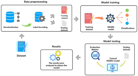 (2) Model training. The training dataset is input into the DSGRU-based intrusion detection training model and executes n epochs of training. Subsequently, a trained DSGRU-based intrusion detection model is output.