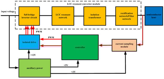 The proposed structure of the semiconductor laser power supply system is illustrated in Figure 1, comprising primarily of an LCC resonant converter module, a controller module, a current acquisition module, and an auxiliary power supply module.