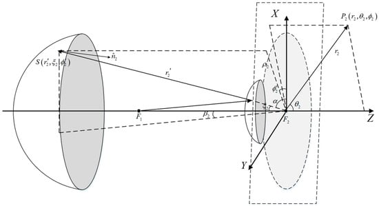 Coordinate relationship diagram from the sub-reflector to the main reflector.