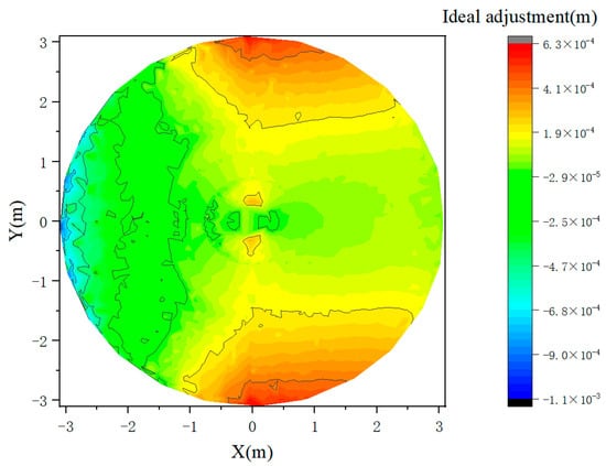 Taking the deformation shown in Figure 12 caused by maximum wind load at 90 degrees as an example, according to the optical path difference data of the aperture surface and Equation (3), the ideal adjustment amount of the sub-reflector array is calculated as shown in Figure 16.