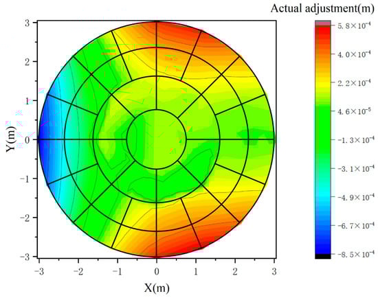 Then, according to Equation (24), the best adjustment quantity of four corners of each panel is calculated, and the partial adjustment quantity of each electric cylinder of the actuators is shown in Table 2.