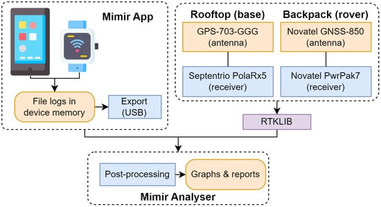 Once the data have been logged, it needs to be processed in order to analyze and use the sensor’s measurements for specific target applications; in our case, the target applications are based on accurate and/or robust positioning. The aforementioned GNSSLogger app is widely used by the research community because of its companion processing software called “GNSS Analysis App” [35], allowing plotting of the logged data. It is developed in Matlab and the source code can be found on GitHub. During the processing of the data, multiple unknown errors arose that prevented its usage for our analysis goals. Thus, similarly to how we developed the Mimir app [36], we have decided to build our own software to process the measurements.